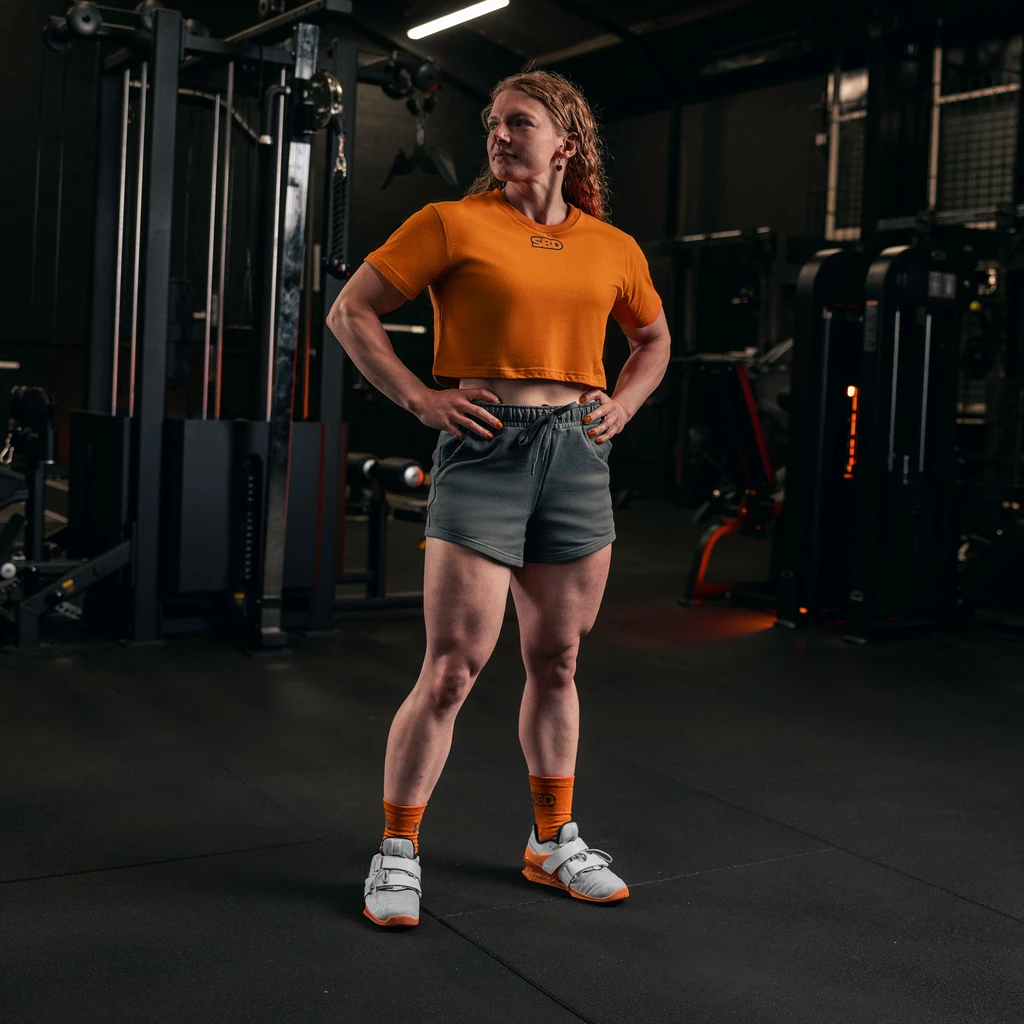 Manufactured fully in the UK from cotton to sewing, the SBD crop top can endure the toughest training. Developed in conjunction with athlete feedback.