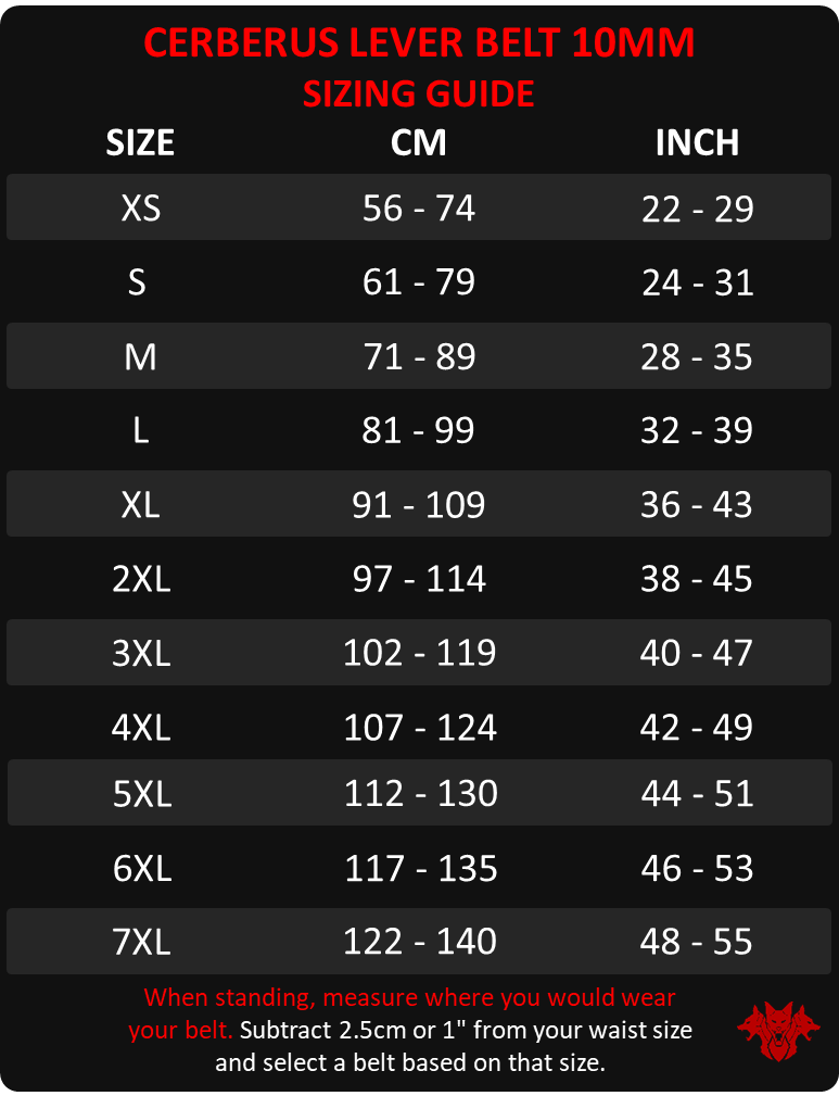 The Cerberus Classic Lever Belt has been made to the highest standard, with durability and quality in mind. 10cm wide and 10mm thick with 6 rows of high strength nylon stitching. We have used High Quality Leather with a soft non slip finish and the embroidered logos add to the premium finish of these belts. This belt has a pre “broken in” feel that makes it quicker to form around your waist, yet remains very supportive. The belt will fit great and feel great from the word go and to top it off it’s covered by our 12 month warranty. Made to the Maximum Size Specs of Most Powerlifting Federations.
